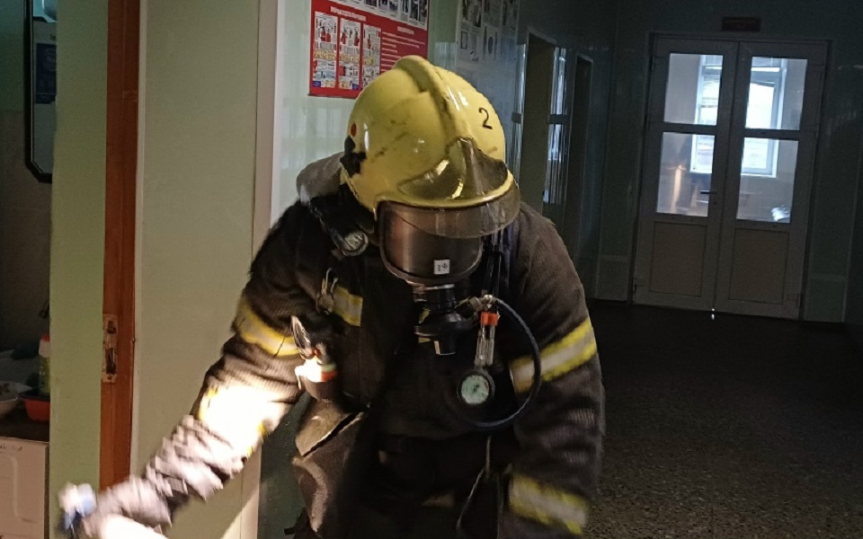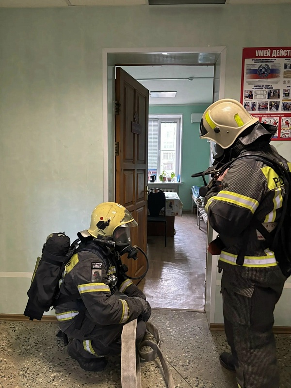 По легенде, в помещении, где отдыхает персонал, возникло задымление. Эвакуацию сотрудников провела добровольная пожарная дружина из пяти человек.